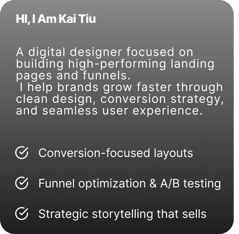 Are you tired of template-style funnels that fail to capture your brand’s true personality? You’re not alone. Your time is valuable, and you deserve a designer who delivers with speed, clarity, and precision—without endless back-and-forth revisions. It’s time for a better experience.